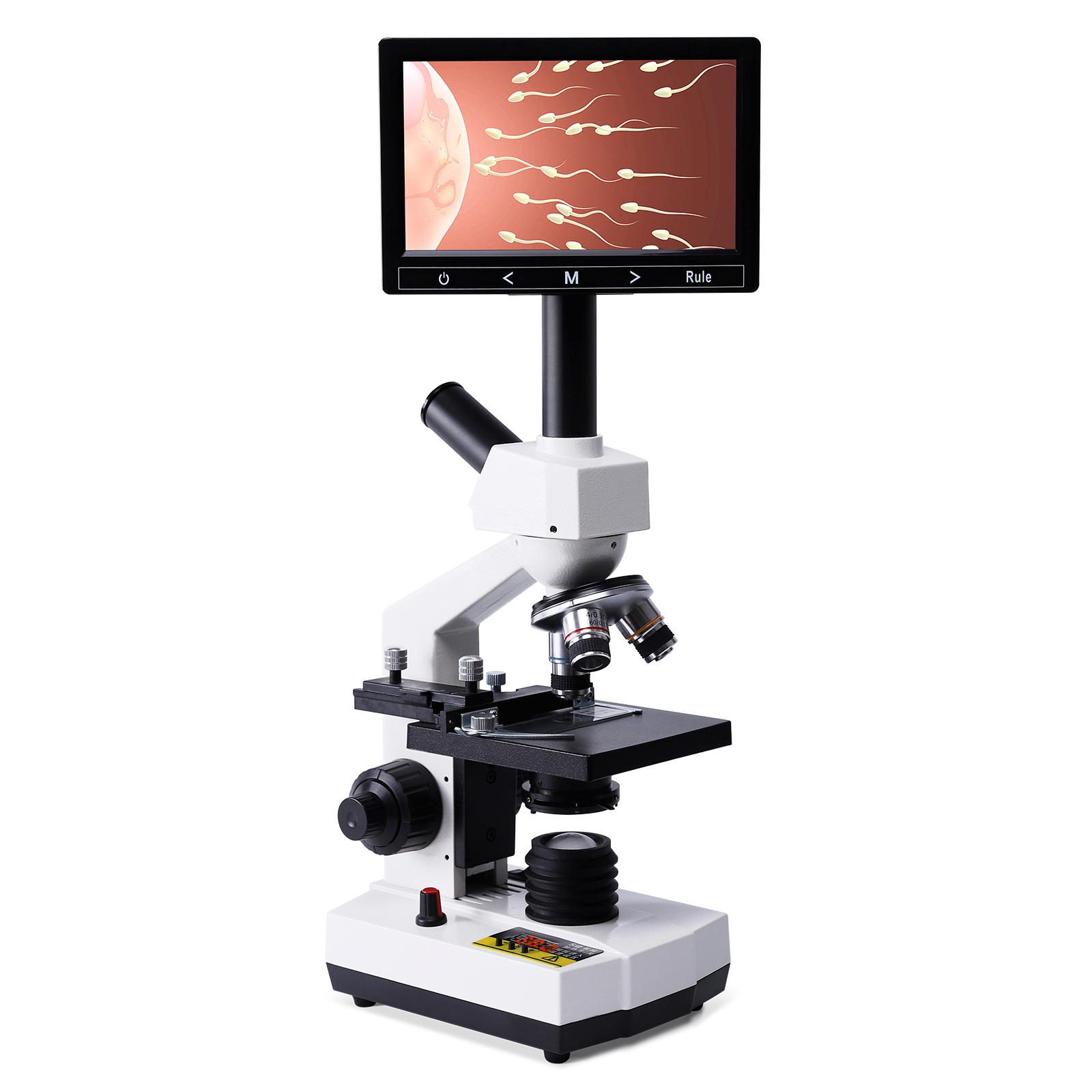 专业三目生物显微镜 高清水产医学实验室血液螨虫细菌活精检测 三目显微镜+9寸液晶屏