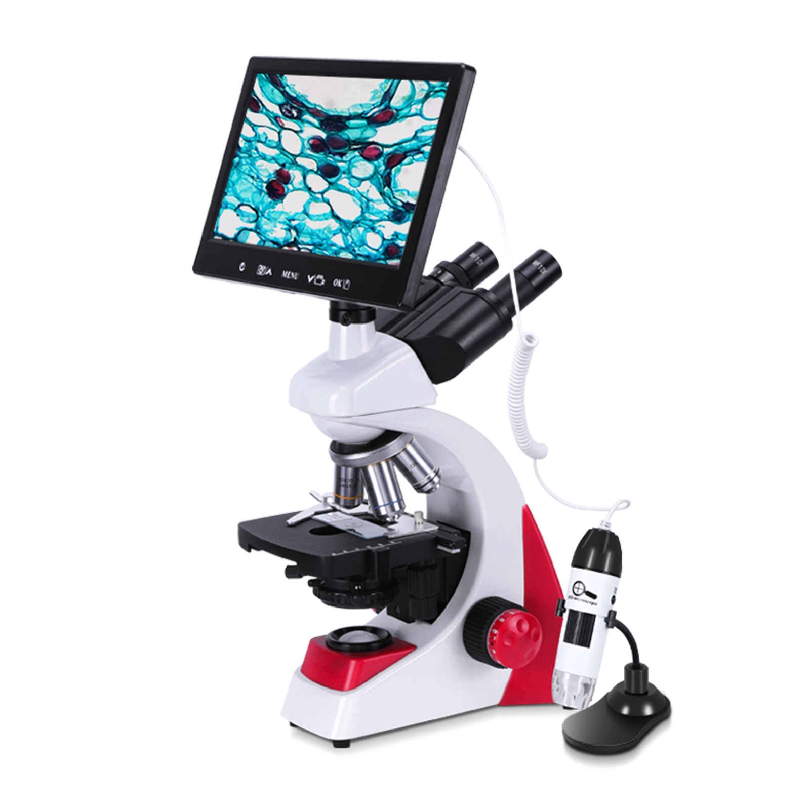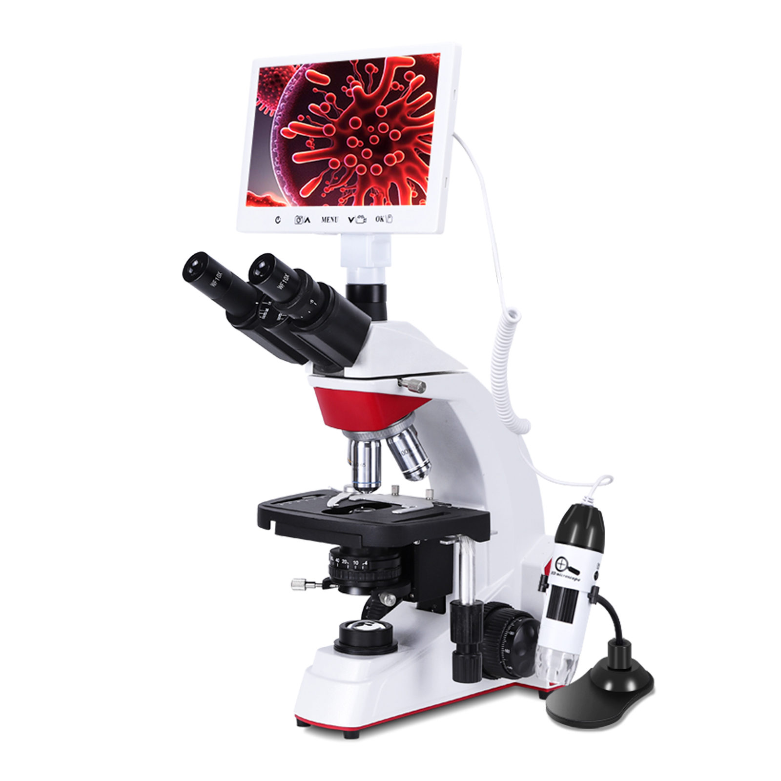 双目显微镜专业生物科研光学可看细菌螨虫 科研三目+7寸智能屏+手持显微镜